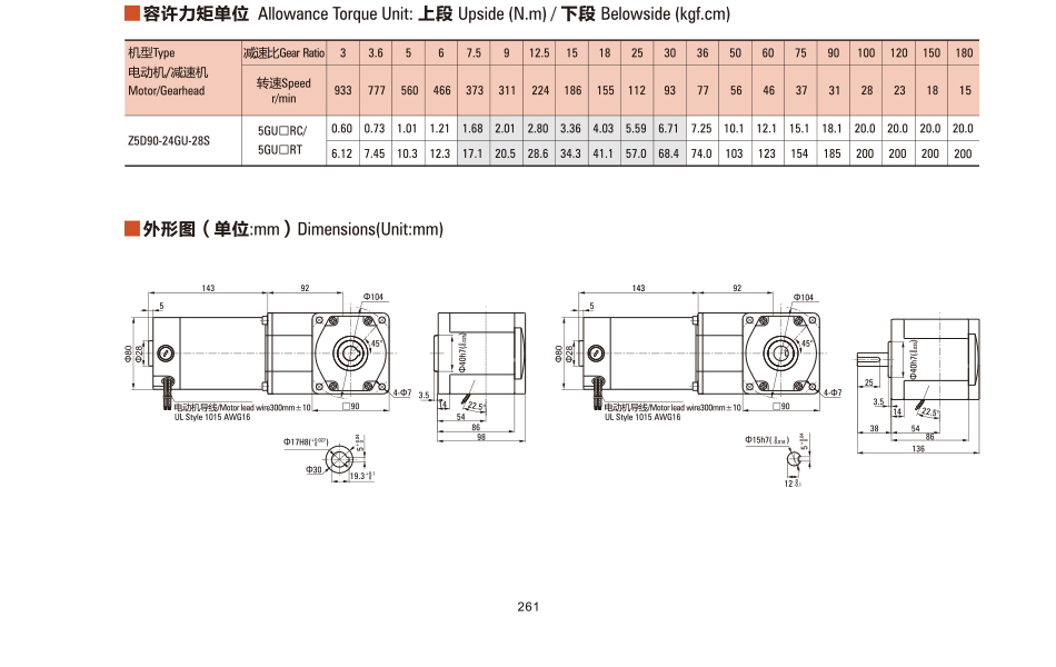 名稱(chēng)Z5D90-24GU-28S直流有刷直角電機(jī)