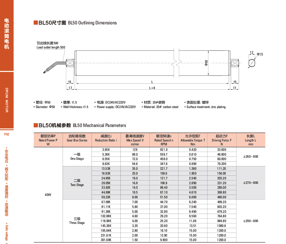 定制:BL50直流電動滾筒電機(jī)